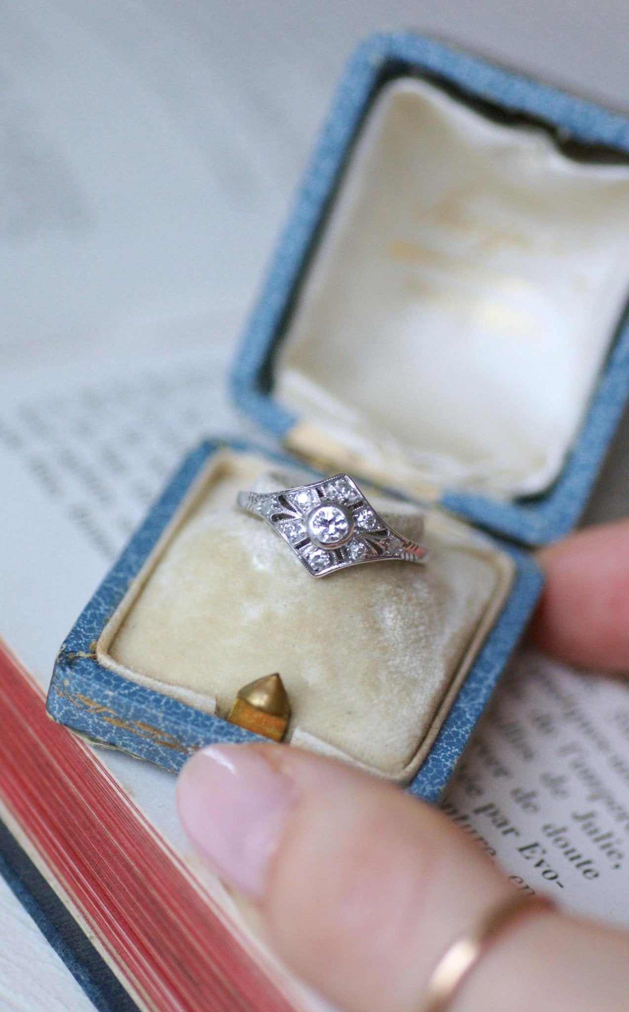 État: légères micro rayures sur les parties platine, légère usure du serti, et légère abrasion et quelques chocs sur les diamants, voir photos.