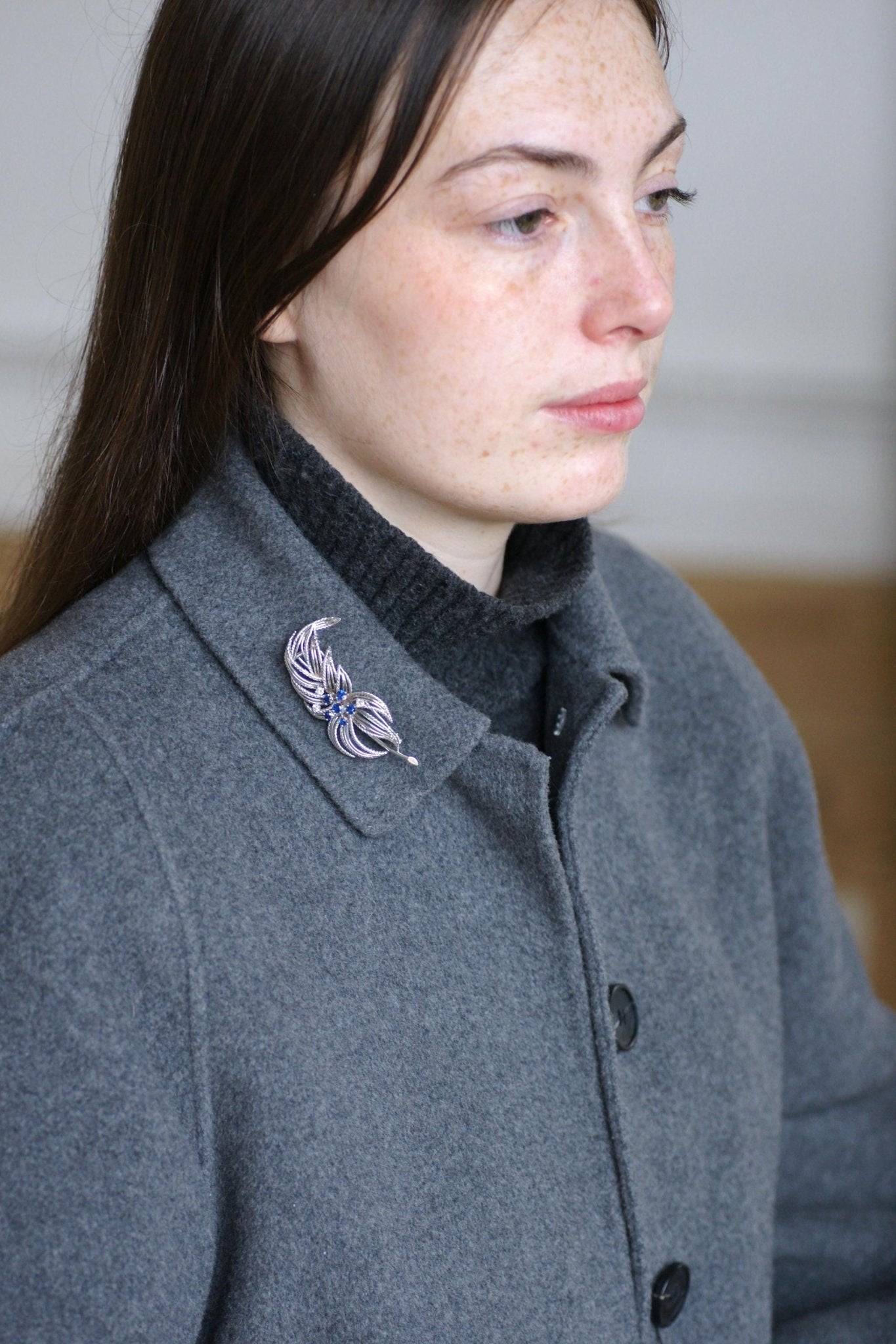 Clip signé de la Maison Boucheron en or blanc 18kt et platine (poinçons : tête d'aigle et tête de chien) représentant un feuillage en fil d'or torsadé, ornée en son centre de trois diamants taillés en brillant (poids total estimé pour environ 0,25Ct), de six saphirs ronds (poids total estimé pour environ 1,00Ct).