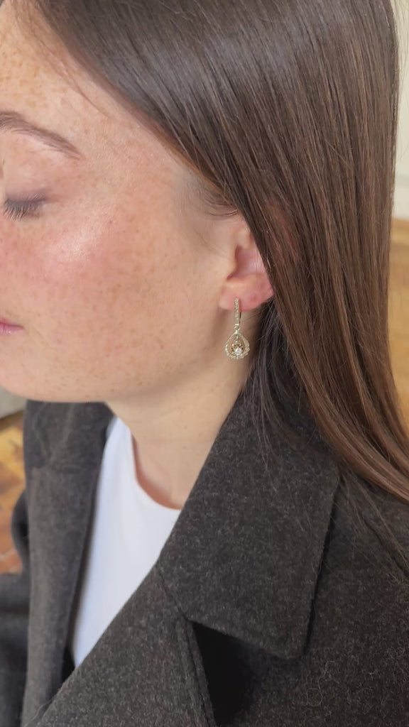 Boucles d'Oreilles Dormeuses Goutte Art Déco Diamants