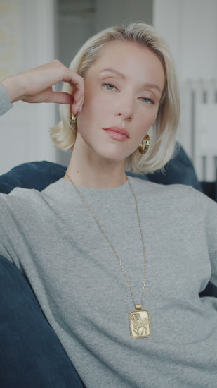 Pendentif plaque rectangulaire en or jaune 18 Kt (poinçon: tête d'aigle) représentant le signe astrologique du bélier.