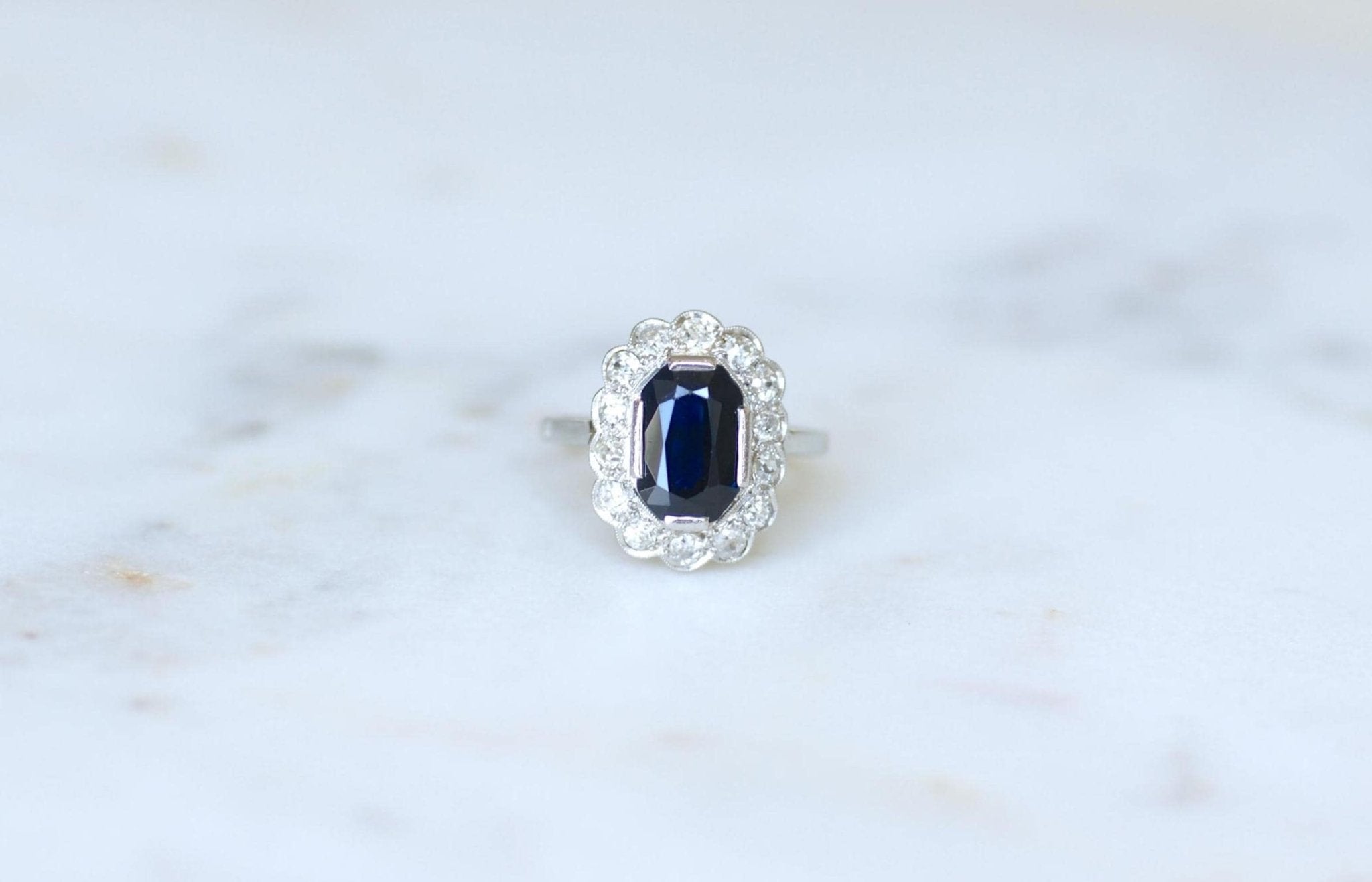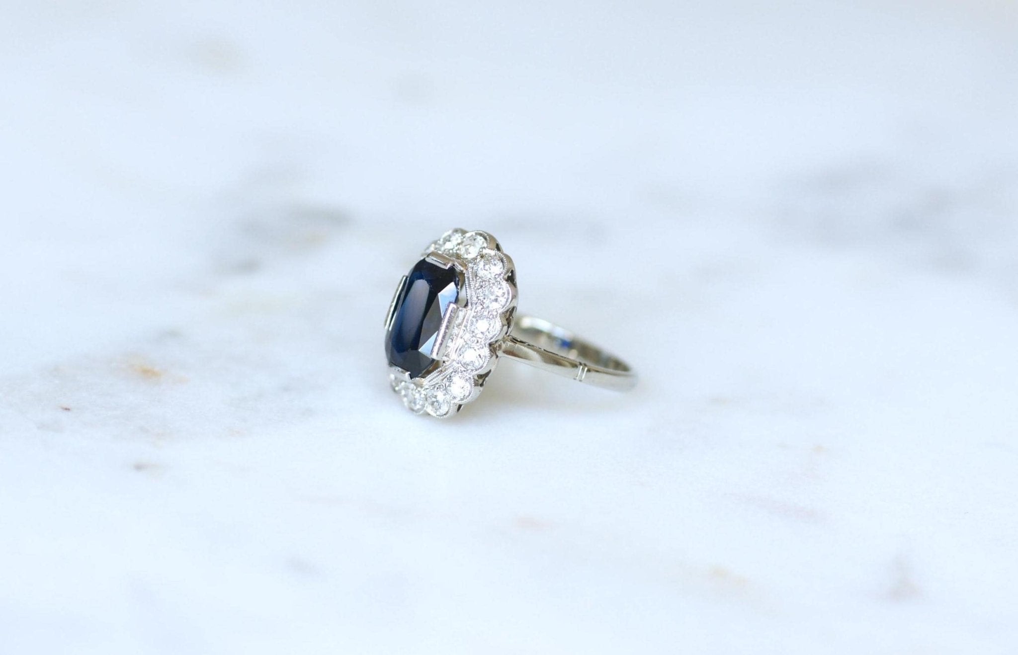 Bague Marguerite Art Déco Saphir 3,00 Cts & Diamants