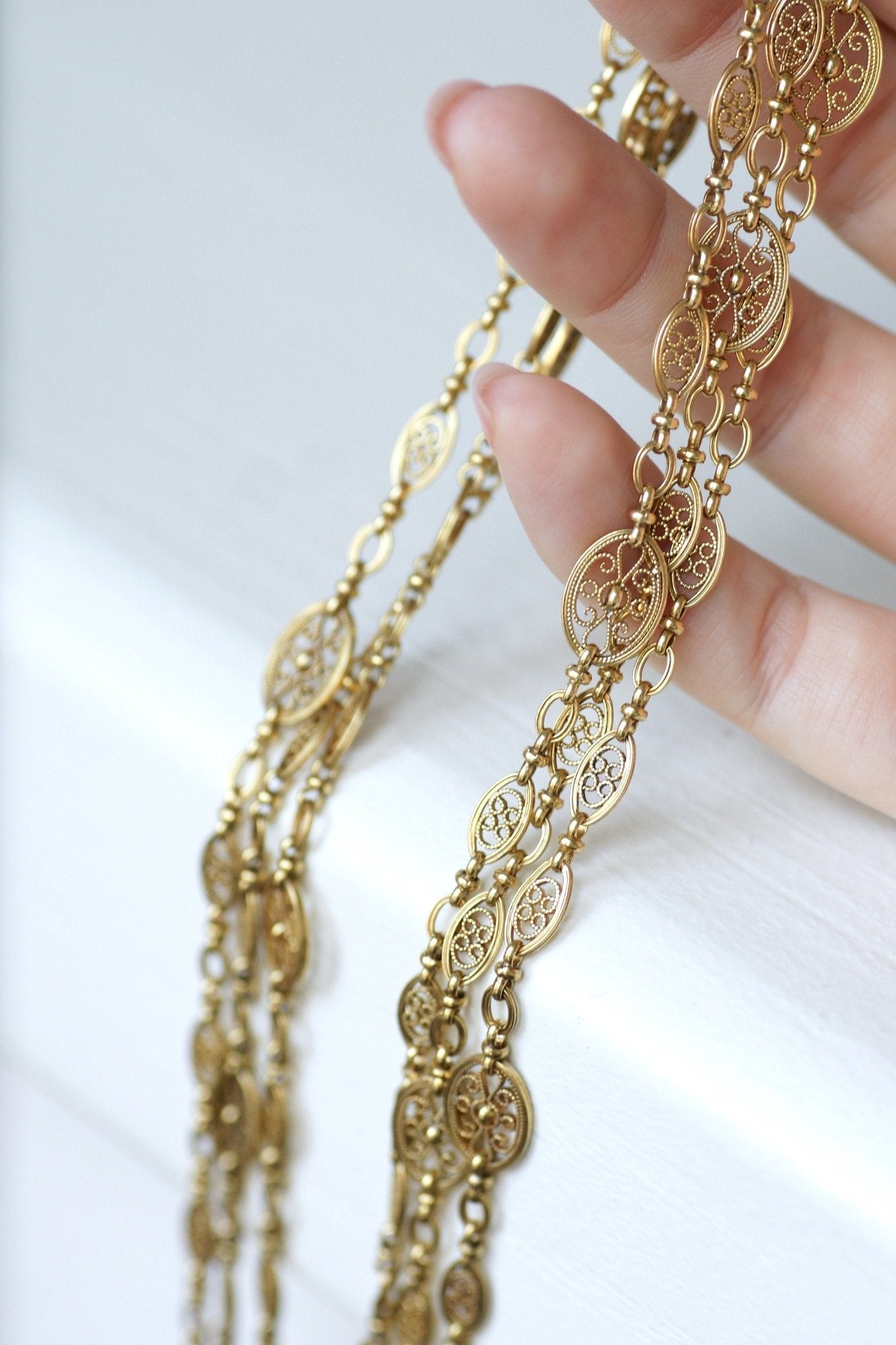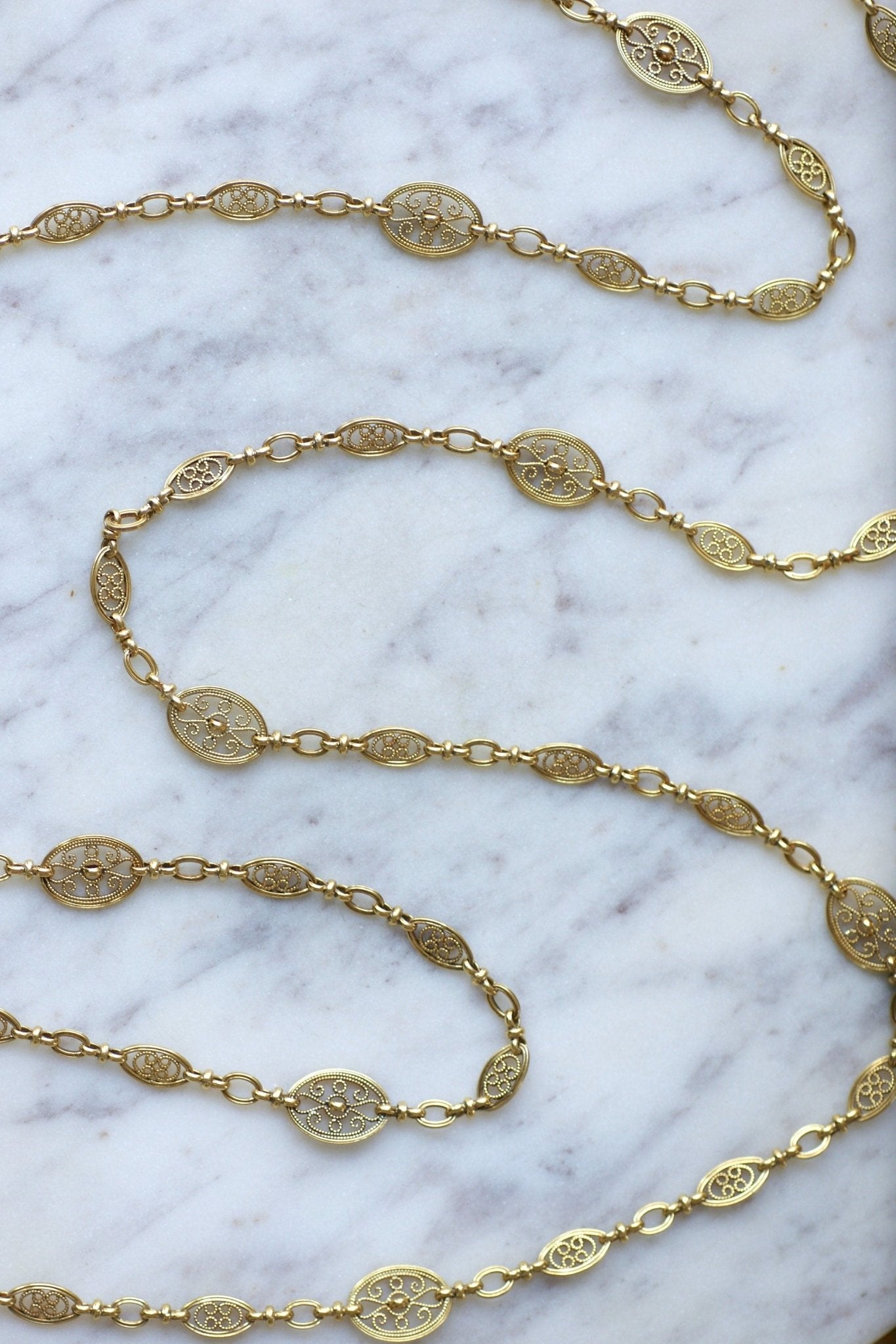 Sautoir, chaine ancienne or 155 cm filigrane ovale