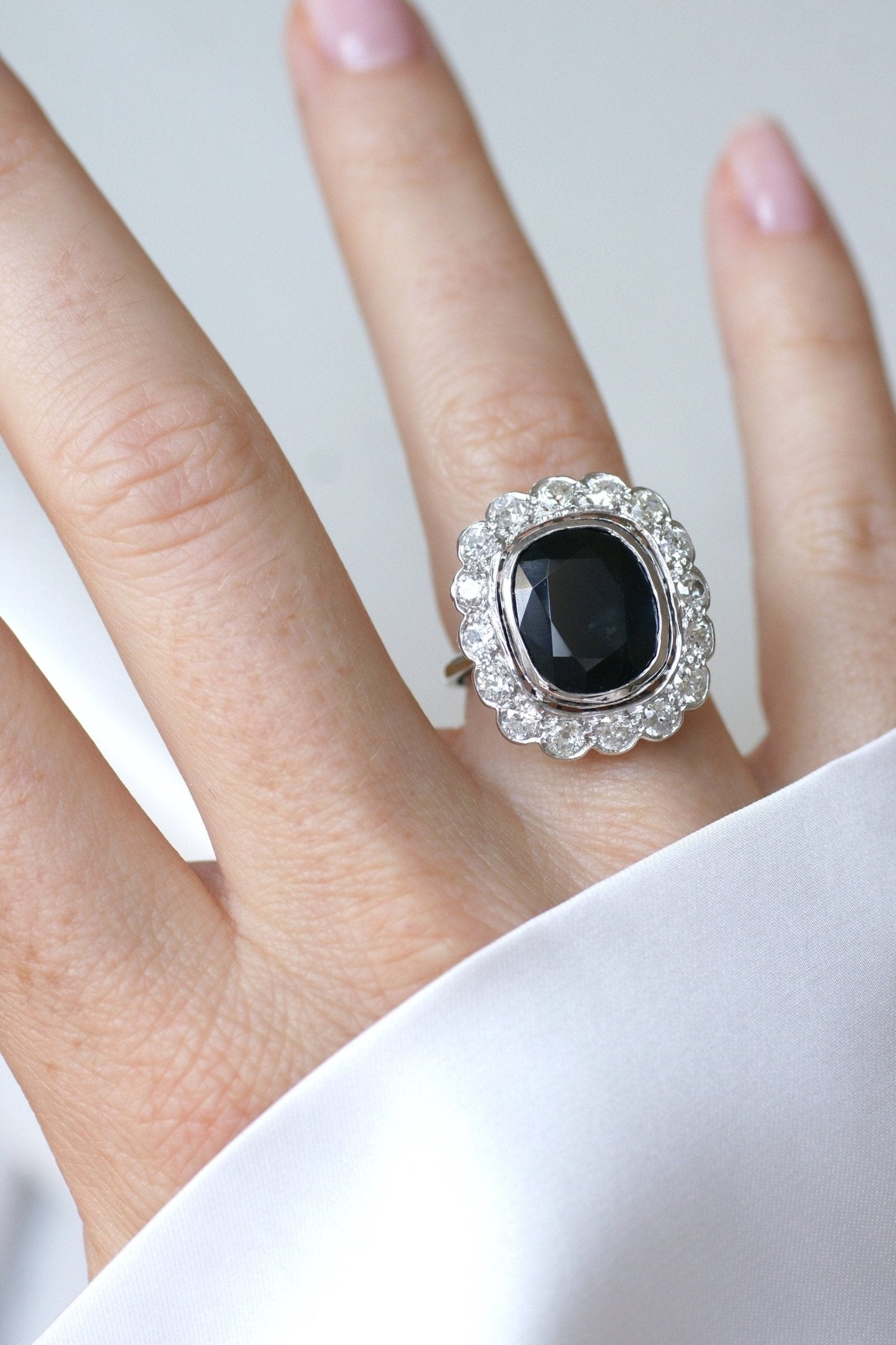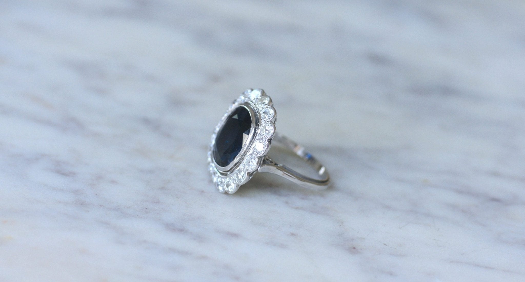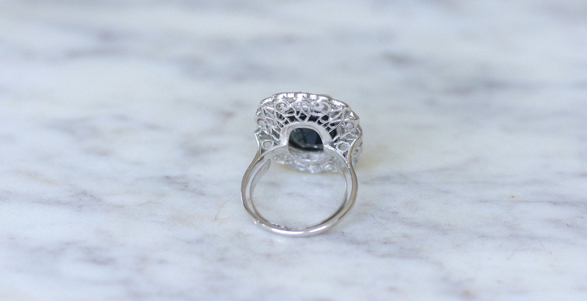 Grande Bague Marguerite Art Déco Saphir et Diamants