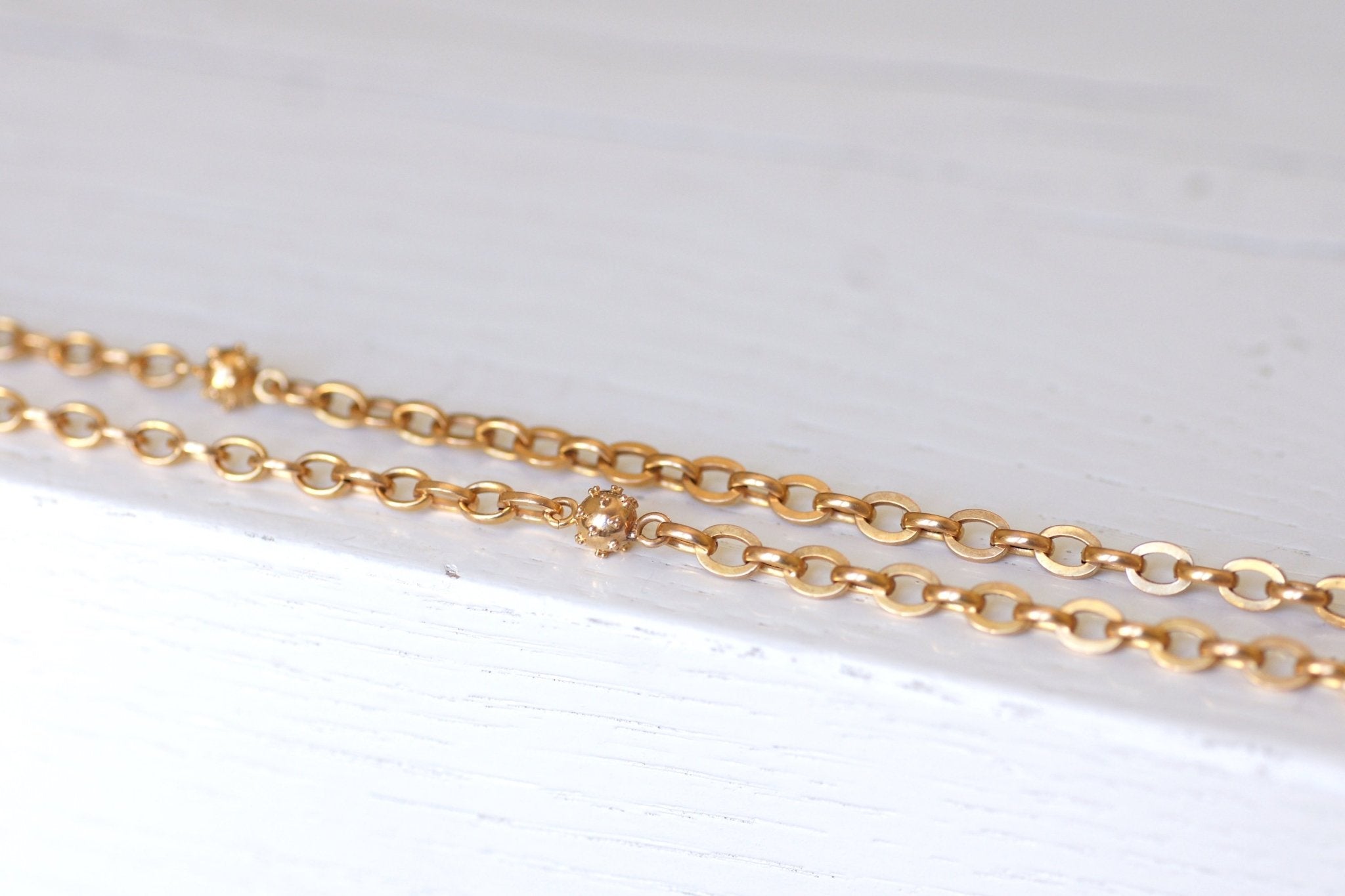 Une chaîne / une multitude de combinaisons possibles: ce collier pourra se porter en rang simple en sautoir, en double très ras de cou, ou même en bracelet, accompagné ou non d'autres chaines et pendentifs vintages.